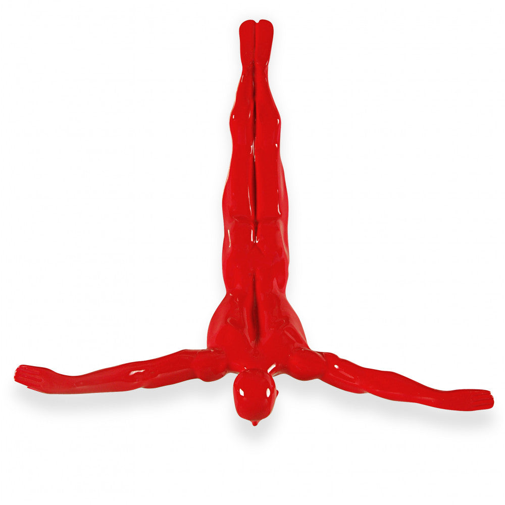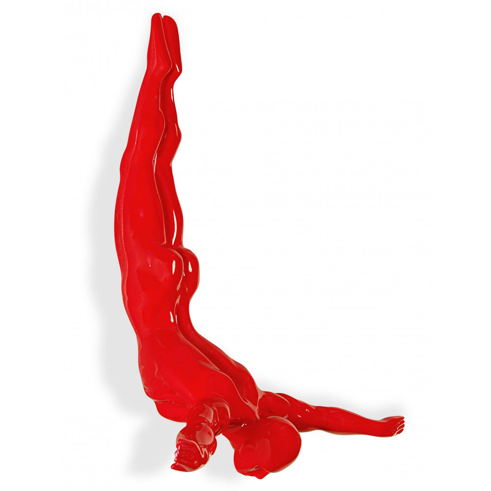 This modern sculpture will create a lasting impression in any home. The Diver Red sculpture is an abstract interpretation of an iconic dive, with bold curves and striking red hues. Every detail of this piece has been carefully constructed to capture the spirit and intensity of the dive. Add a touch of energy to your space with this unique work of art.